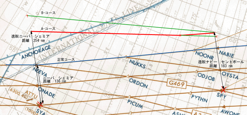 つまり No-1 INS のAコースに変更すればセントポールのアンテナに近づき通信が出来る可能性が出てくること又ナビー以降のルートはソ連空域が迫る